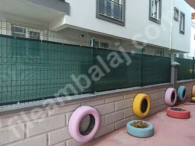 - Gölgelik Çit Filesi, tel çiti üzerine örtülerek bahçe, havuz, site veya arsa gibi alanlarda mahremiyet sağlar.
