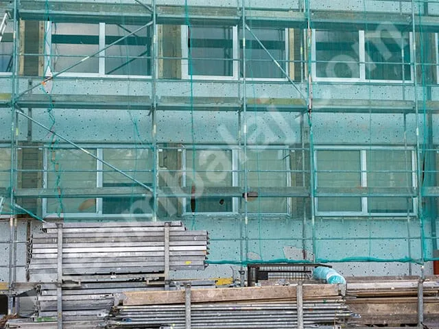 - İnşaat İskele Filesi sayesinde, işçiler ve inşaat malzemeleri için tozun ve rüzgarın olumsuz etkileri önlenmektedir.