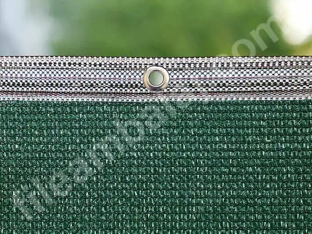 - Gölgeleme tülü ürününün dört kenarı şeritlidir ilaveten her kenarına birer metre aralıklarla kuşgözü halka takılmıştır.